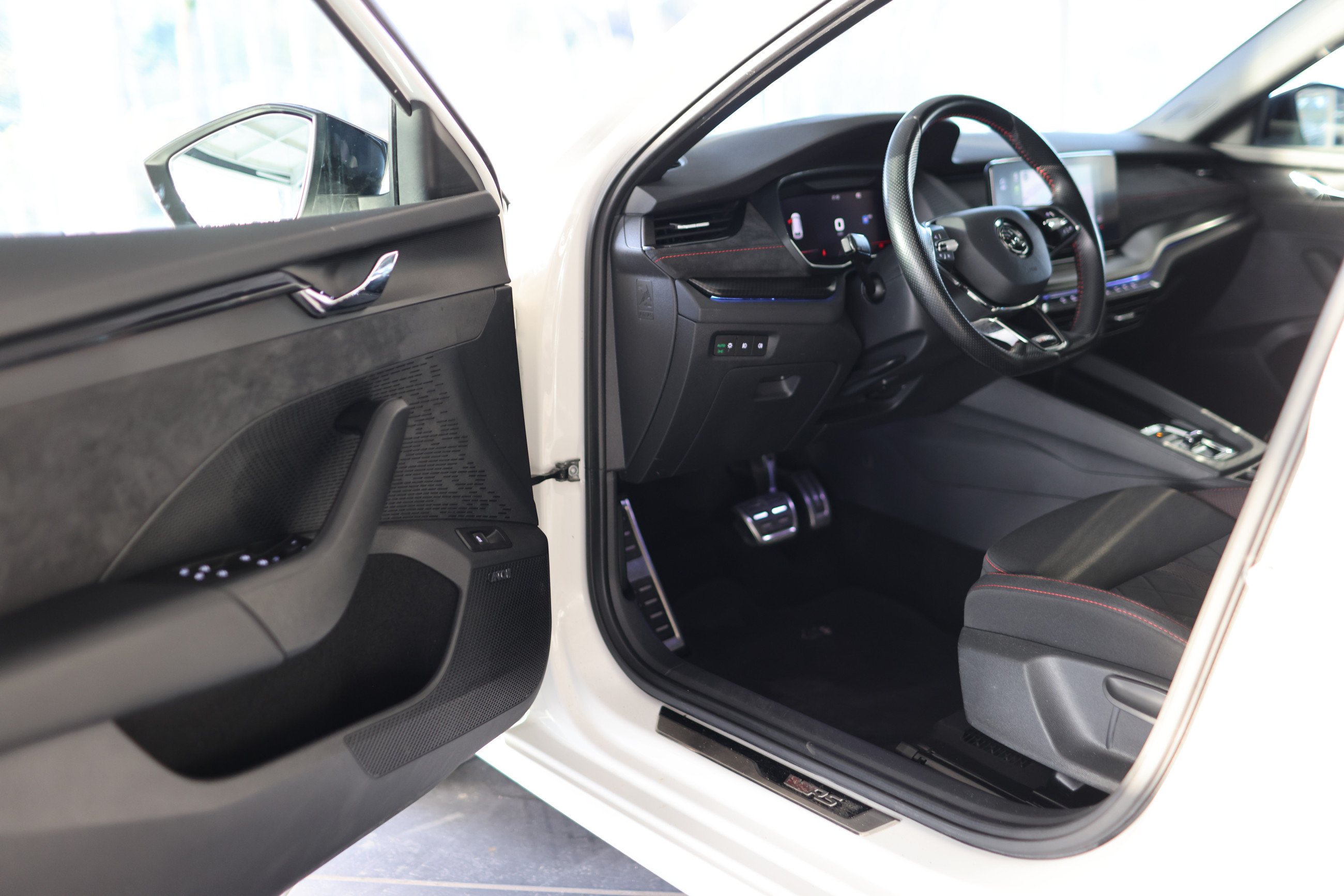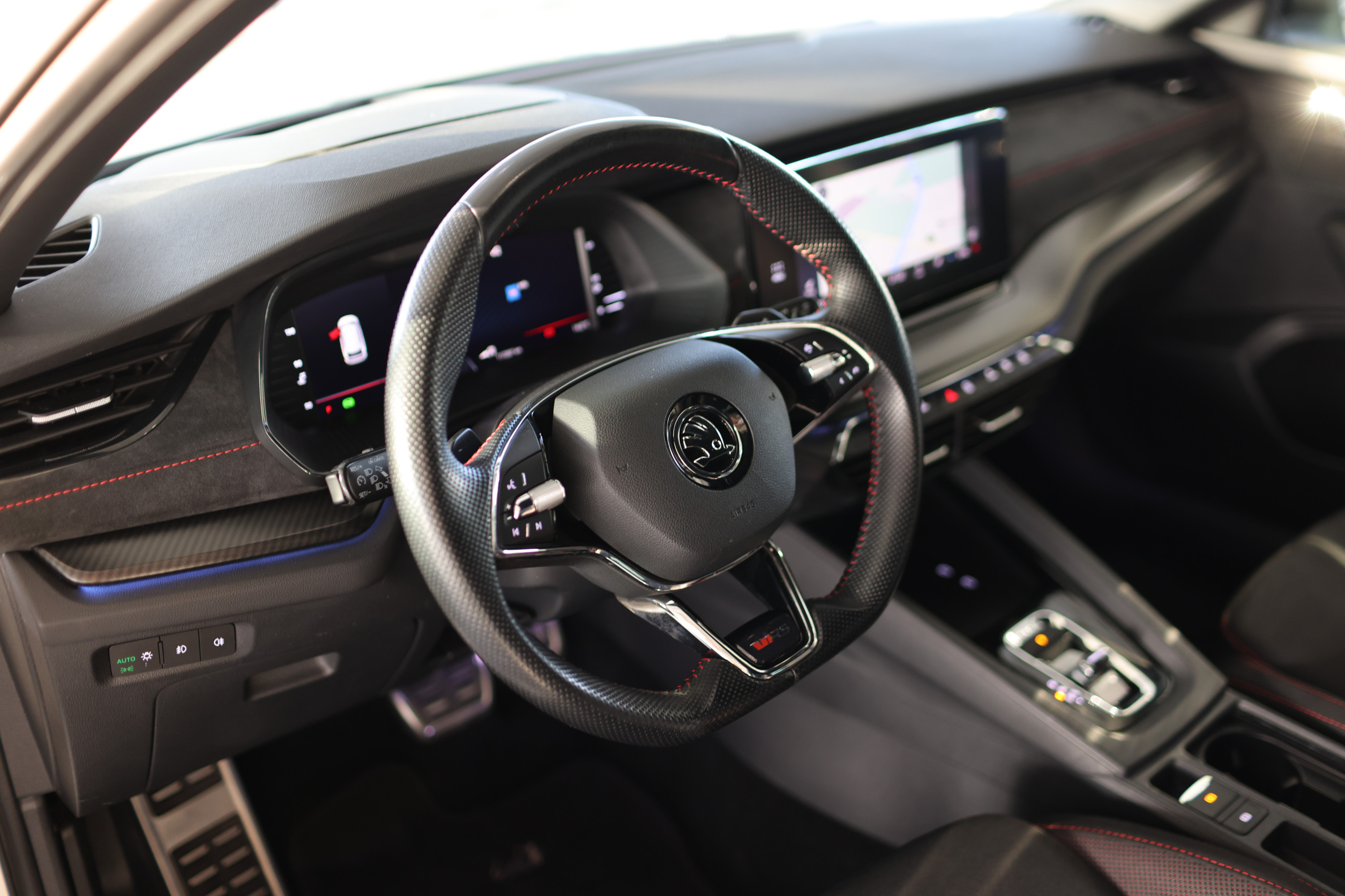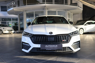 Serien-Ausstattung: Ablagefach für Regenschirm, Ablagefach mit Cargo-Organizer (Gepäck-/Laderaum), Ablagetasche an Vordersitzlehnen, Airbag Beifahrerseite abschaltbar, Airbag Fahrer-/Beifahrerseite, Ambiente-Beleuchtung LED, Anti-Blockier-System (ABS), Antriebs-Schlupfregelung (ASR), Außenspiegel elektr. anklappbar, Außenspiegel elektr. verstell- und heizbar, Außenspiegel mit Abblendautomatik, links, Außenspiegel schwarz lackiert, Bordcomputer, Brillenfach, Dachhimmel schwarz, Dachreling schwarz, hochglänzend, Differentialsperre (Vorderachse), Edelstahlpedale Sportdesign, Einparkhilfe vorn und hinten, Einstiegsleisten (Aluminium-Design), Elektron. Querdifferentialsperre (XDS), Elektron. Stabilitäts-Programm (ESP), Fahrassistenz-System: Abbiegebremsfunktion und Ausweichunterstützung, Fahrassistenz-System: Auffahrwarnsystem mit City-Notbremsfunktion (Frontradar-Assistent), Fahrassistenz-System: Berganfahr-Assistent (Hill-Holder), Fahrassistenz-System: Fahrprofilauswahl, Fahrassistenz-System: Multikollisionsbremse (Multi Collision Brake), Fahrassistenz-System: Spurhalteassistent (Lane Assist), Fensterheber elektrisch vorn + hinten, Fensterzierleisten schwarz, hochglänzend, Freisprechanlage Telefon mit Bluetooth, Frontkamera, Fußraumbeleuchtung vorn und hinten, Gepäckraumabdeckung / Rollo, Geschwindigkeits-Regelanlage (Tempomat) inkl. Geschwindigkeits-Begrenzeranlage, Getriebe 7-Gang - Doppelkupplungsgetriebe DSG, Heckleuchten LED (Kristallglas-Optik), Heckscheibenwischer, Heckspoiler (Hecktür / Kofferdeckel), Innenausstattung: Dekoreinlagen Dark Carbon, Innenspiegel mit Abblendautomatik, Isofix-Aufnahmen für Kindersitz an Beifahrersitz, Isofix-Aufnahmen für Kindersitz an Rücksitz, Kennzeichenbeleuchtung LED, Kindersicherung elektr. betätigt, Klimaanlage Climatronic 2-Zonen, Knieairbag Fahrerseite, Kombiinstrument digital (virtual cockpit), Kopf-Airbag-System, Kühlergrill schwarz, Lehnenentriegelung der Rücksitzlehne im Kofferraum, Lendenwirbelstütze Sitz vorn links, Lendenwirbelstütze Sitz vorn rechts, Lenkrad (Sport/Leder - 3-Speichen, unten abgeflacht) mit Multifunktion, Lenksäule (Lenkrad) verstellbar (vertikal / axial), Licht- und Regensensor, Lichtassistent (Coming Home, Leaving Home), LM-Felgen, Mittelarmlehne hinten, Mittelarmlehne vorn, Notrufsystem, Parkbremse elektronisch, Phonebox, Progressivlenkung, Radioempfang digital (DAB+), Reifendruck-Kontrollsystem, Rußpartikelfilter, Rücksitzlehne geteilt/klappbar, Schadstoffarm nach Abgasnorm Euro 6d, Scheibenwaschdüsen heizbar, Scheinwerfer LED mit adaptiver Lichtverteilung (AFS), Scheinwerfer-Reinigungsanlage (SRA), Schließ-/Startsystem Kessy, Seitenairbag vorn, Seitenairbag vorn mitte (Center-Airbag), Seitenscheiben hinten und Heckscheibe abgedunkelt (SunSet), Service-System: Remote Services, Servolenkung, Sitz vorn links höhenverstellbar, Sitz vorn rechts höhenverstellbar, Sitzbezug / Polsterung: Stoff RS schwarz mit Ziernaht, Sitzheizung vorn, SmartLink (MirrorLink, Apple CarPlay und Android Auto), Sonnenblenden mit Spiegel (LED-Beleuchtung), Sport-Fahrwerk, Sportsitze, Sprachsteuerung für Infotainment-System, Start/Stop-Anlage, Steckdose (12V-Anschluß) im Koffer-/Laderaum, Tagfahrlicht LED, Türen mit Warnleuchte, USB-Schnittstelle vorn (2-fach, Typ C), Verglasung getönt, Verzurrösen Koffer-/Laderaum, Wegfahrsperre, Wireless SmartLink, Zentralverriegelung / Startanlage Kessy-Go