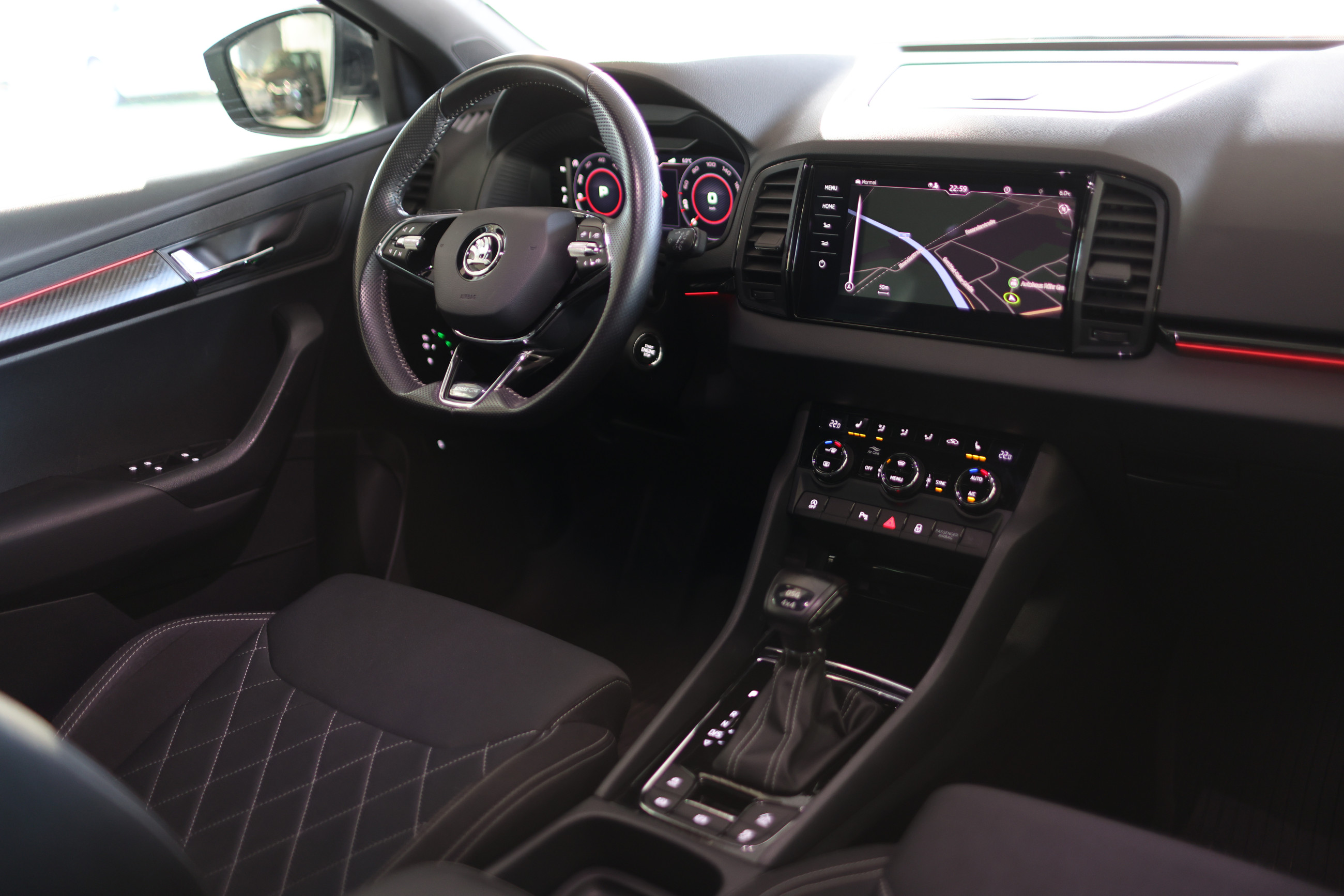 Serienausstattung: 8 Lautsprecher, Ablagetasche an Vordersitzlehnen, Airbag Fahrer-/Beifahrerseite, Anti-Blockier-System (ABS), Antriebs-Schlupfregelung (ASR), Antriebsart: Allradantrieb, Außenspiegel elektr. verstell-, heiz- und anklappbar, mit Abblendautomatik, Außenspiegel schwarz lackiert, Beleuchtungs-Paket LED, Dachreling, Einstiegsleisten (Aluminium-Design), Elektron. Querdifferentialsperre (XDS), Elektron. Stabilitäts-Programm (ESP), Fahrassistenz-System: Auffahrwarnsystem mit City-Notbremsfunktion (Frontradar-Assistent), Fahrassistenz-System: Berganfahr-Assistent (Hill-Holder), Fahrassistenz-System: Einschaltautomatik für Fahrlicht (Fahrlichtassistent), Fahrassistenz-System: Multikollisionsbremse (Multi Collision Brake), Fensterheber elektrisch vorn + hinten, Funkschlüssel (3) klappbar, Gepäckraumabdeckung / Rollo, Gepäcksicherung / Gepäckbefestigung (Cargo-Elemente), Getriebe 7-Gang - Doppelkupplungsgetriebe DSG, Handschuhfach beleuchtet, Heckleuchten LED (Kristallglas-Optik), Infotainment-Paket Bolero, Audiosystem Bolero mit Touchscreen, Sprachsteuerung für Infotainment-System, Komfort-Freisprecheinrichtung Bluetooth, Phonebox, Induktionsladeschale für Smartphone, SmartLink (MirrorLink, Apple CarPlay und Android Auto), Wireless SmartLink, Innenausstattung: Sportline, Innenausstattung: Dekoreinlagen schwarz, Dachhimmel schwarz, Innenraumfilter: Staub- und Pollenfilter, Innenspiegel mit Abblendautomatik, Isofix-Aufnahmen für Kindersitz an Rücksitz, Kennzeichenbeleuchtung LED, Klimaanlage Climatronic 2-Zonen, Knieairbag Fahrerseite, Kopf-Airbag-System, Lehnenentriegelung der Rücksitzlehne im Kofferraum, Lenkrad (Sport/Leder - 3-Speichen, unten abgeflacht) mit Multifunktion und Schaltfunktion, Lenksäule (Lenkrad) höhenverstellbar, Lenksäule (Lenkrad) längsverstellbar, Leseleuchte, LM-Felgen, Mittelarmlehne hinten, Mittelarmlehne vorn, Multifunktionsanzeige, Netzprogramm im Kofferraum, Notrufsystem, Radioempfang digital (DAB+), Reifen-Reparaturkit, Reifendruck-Kontrollsystem, Rußpartikelfilter, Rücksitzlehne geteilt/klappbar, Schadstoffarm nach Abgasnorm Euro 6d, Schalt-/Wählhebelgriff Leder, Scheibenwaschdüsen heizbar, Scheibenwischer Aero (Flachblattscheibenwischer), Scheibenwischer mit Regensensor, Scheinwerfer LED, Leuchtweitenregelung, Nebelscheinwerfer LED mit Abbiegelicht, Tagfahrlicht LED, Schließ-/Startsystem Kessy, Seitenairbag vorn, Seitenscheiben hinten und Heckscheibe abgedunkelt (SunSet), Servolenkung elektronisch (Servotronic), Sitz vorn links höhenverstellbar, Sitz vorn rechts höhenverstellbar, Sitzheizung vorn, Sonnenblende links mit Spiegel, Sonnenblende rechts mit Spiegel, Sport-Paket, Edelstahlpedale Sportdesign, Fahrassistenz-System: Adaptive Fahrwerksregelung (DCC) inkl. Fahrprofilauswahl (Drive Mode Selector), Fahrassistenz-System: Fahrprofilauswahl, Progressivlenkung, Fahrassistenz-System: Berganfahr-/Abfahr-Assistent (Offroad Assistent), Sportline, Start/Stop-Anlage, Steckdose (12V-Anschluß) im Koffer-/Laderaum, Steckdose (12V-Anschluß) in Mittelkonsole vorn, Türgriffe innen verchromt, Verglasung getönt, Verzurrösen Koffer-/Laderaum, Zentralverriegelung