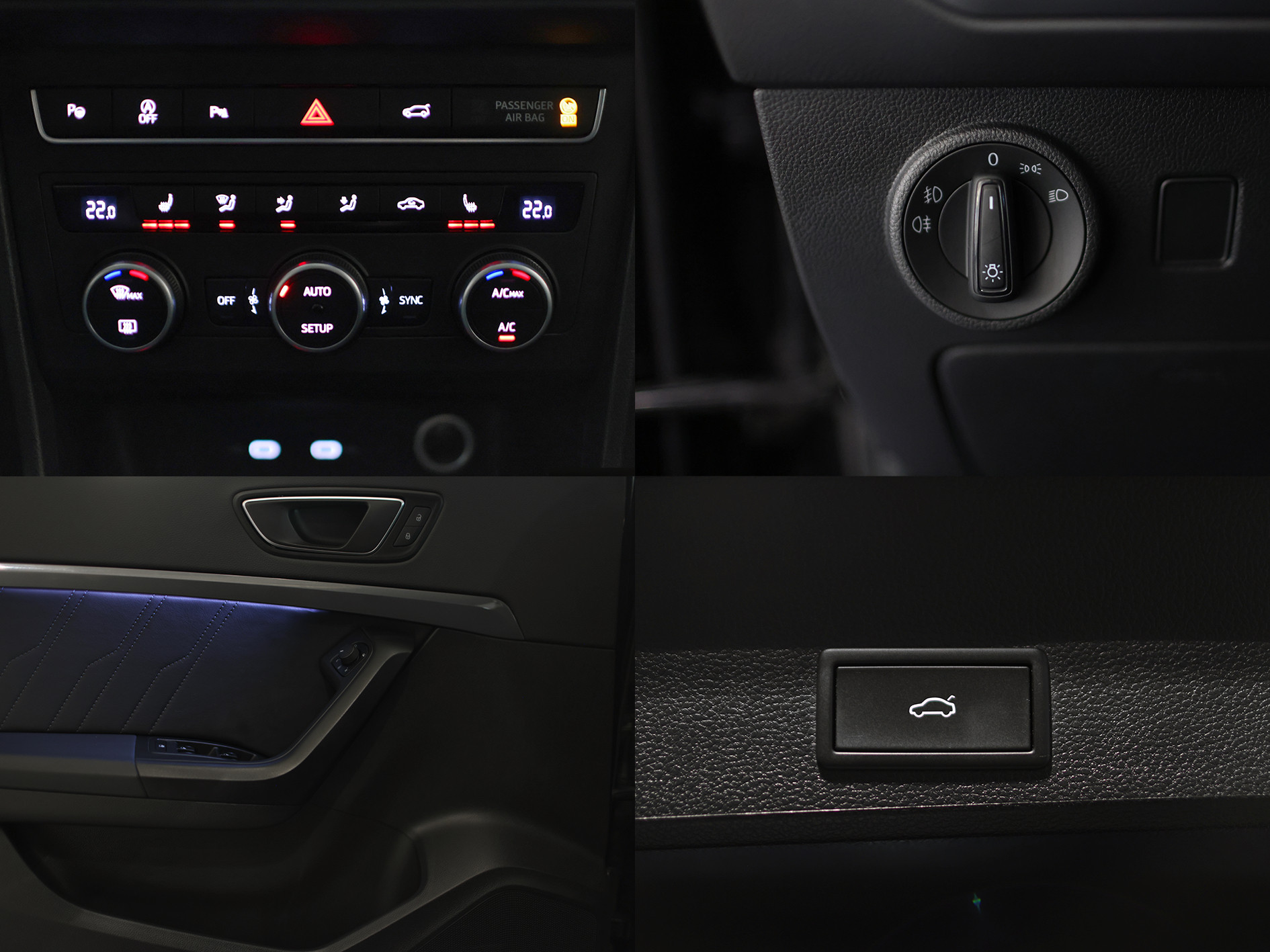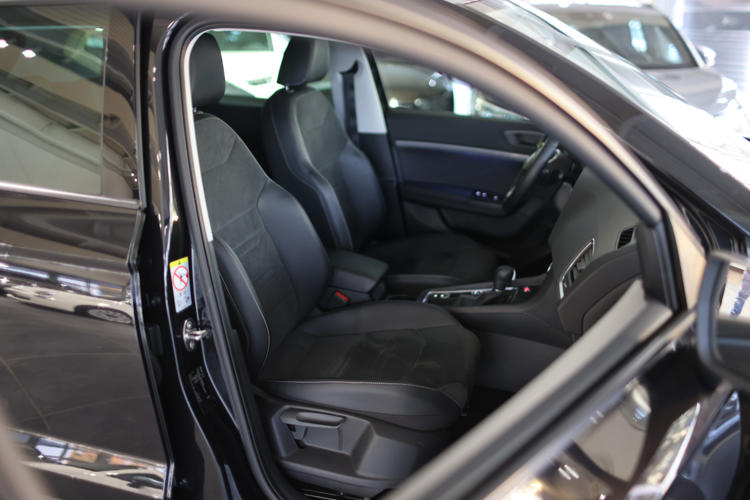 Serien-Ausstattung: 3. Bremsleuchte, 8 Lautsprecher, Ablagetasche an Vordersitzlehnen, Airbag Beifahrerseite abschaltbar, Airbag Fahrer-/Beifahrerseite, Ambiente-Beleuchtung LED, Anti-Blockier-System (ABS), Antriebs-Schlupfregelung (ASR), Außenspiegel elektr. verstell-, heiz- und anklappbar mit Spiegelabsenkung, Außenspiegel Wagenfarbe, Blinkleuchten LED in Außenspiegel integriert, Bluetooth-Schnittstelle mit Freisprecheinrichtung integriert, Bordcomputer, Brillenfach, Elektron. Querdifferentialsperre (XDS), Elektron. Stabilitätskontrolle (ESC), Fahrassistenz-System: Berganfahr-Assistent (Hill-Holder), Fahrassistenz-System: Müdigkeitserkennung, Fahrassistenz-System: Umfeldbeobachtungssystem (Front assist) mit City-Notbremsfunktion, Fensterheber elektrisch vorn + hinten mit Komfortschaltung, Gepäckraumabdeckung / Rollo, Geschwindigkeits-Regelanlage (Tempomat), Getriebe 7-Gang - Doppelkupplungsgetriebe DSG, Handschuhfach beleuchtet, Heckleuchten LED, Isofix-Aufnahmen für Kindersitz, Klimaanlage Climatronic 2-Zonen, Knieairbag Fahrerseite, Kofferraumbeleuchtung, Kopf-Airbag-System, Lendenwirbelstütze Sitz vorn links, verstellbar, Lendenwirbelstütze Sitz vorn rechts, verstellbar, Mittelarmlehne hinten, Mittelkonsole vorn mit Mittelarmlehne, Becherhalter, Ablagebox und Luftausströmer hinten, Modellpflege, Nebelscheinwerfer LED mit Abbiegelicht, Notrufsystem, Otto-Partikelfilter (OPF), Parkbremse elektrisch mit Auto-Hold-Funktion, Reifen-Reparaturset, Reifenkontroll-Anzeige, Rücksitzlehne geteilt/klappbar (1/3-2/3), Schadstoffarm nach Abgasnorm Euro 6d, Schalt-/Wählhebelgriff Leder, Scheinwerfer Voll-LED, SEAT Media-System Plus, Seitenairbag, Servolenkung elektronisch gesteuert (Servotronic), Sitz vorn links höhenverstellbar, Sitz vorn rechts höhenverstellbar, Start/Stop-Anlage, Stau-/Ablagefach unter Sitz vorn links, Steckdose (12V-Anschluß) vorn, Tagfahrlicht LED, USB-Ladeanschlüsse (2-fach, Typ C) für 2.Sitzreihe, Verzurrösen Koffer-/Laderaum, Wegfahrsperre (elektronisch), Wärmeschutzverglasung, Zentralverriegelung mit Fernbedienung