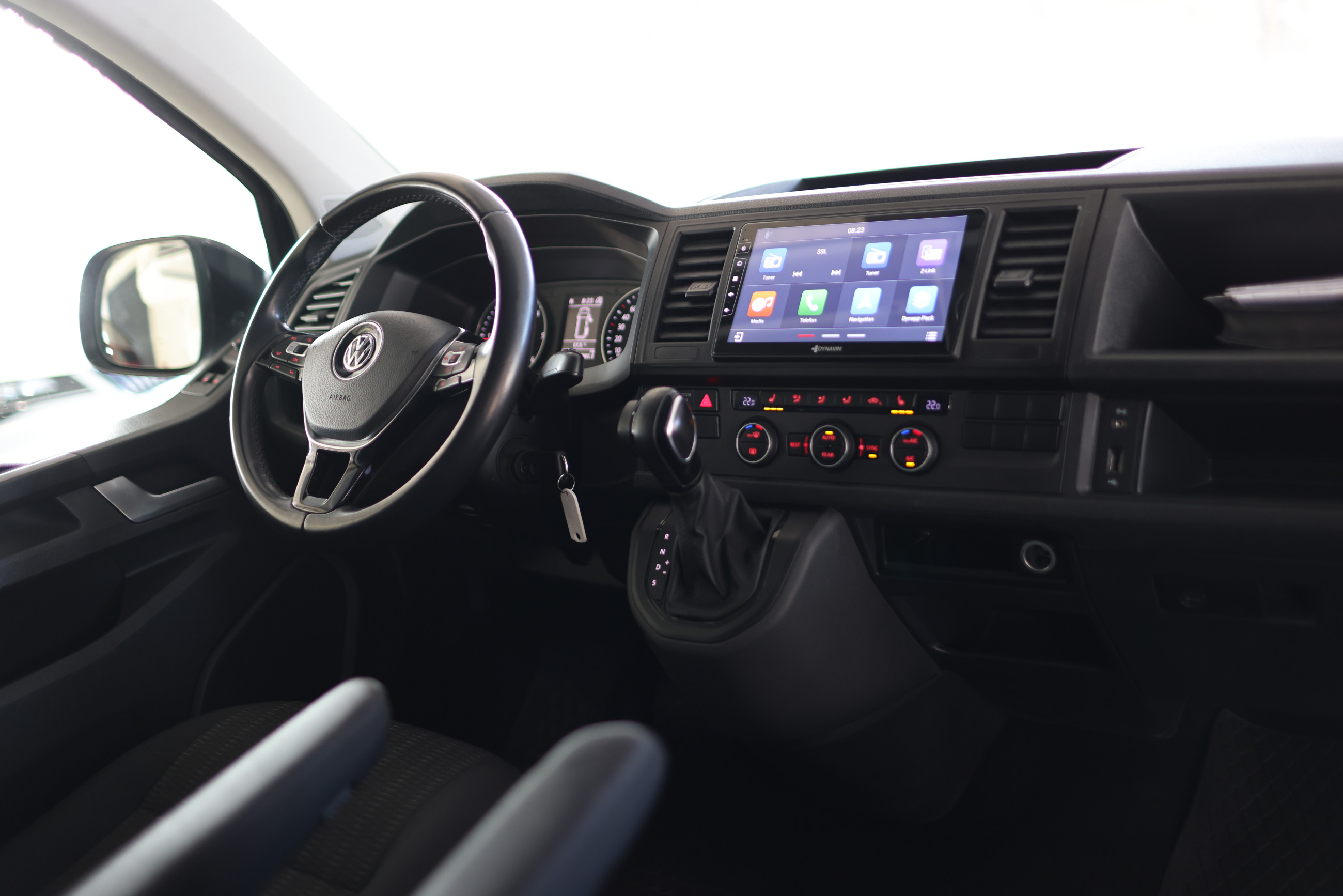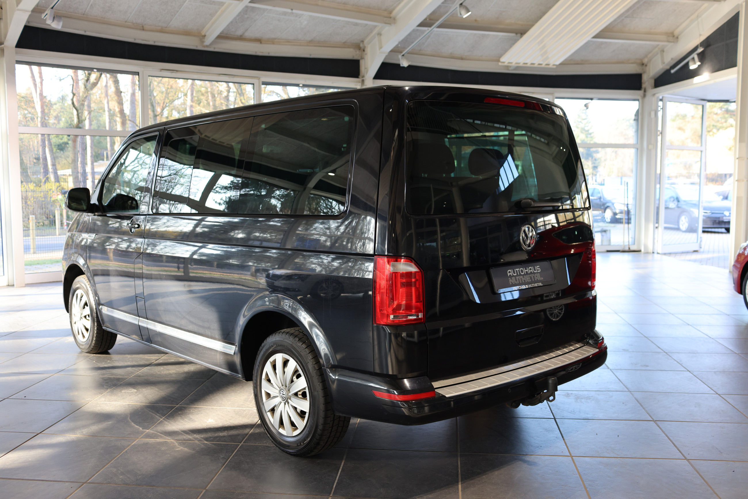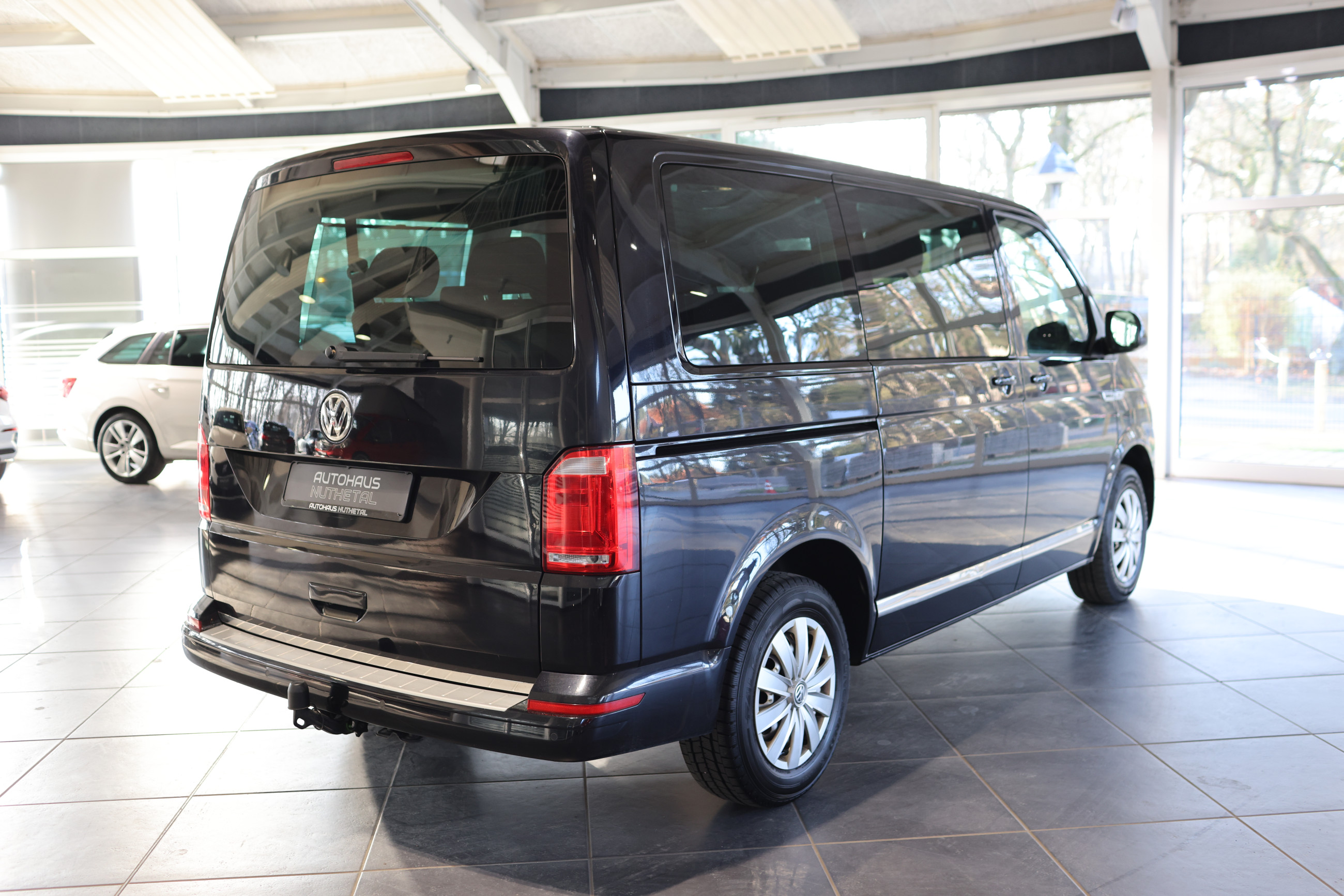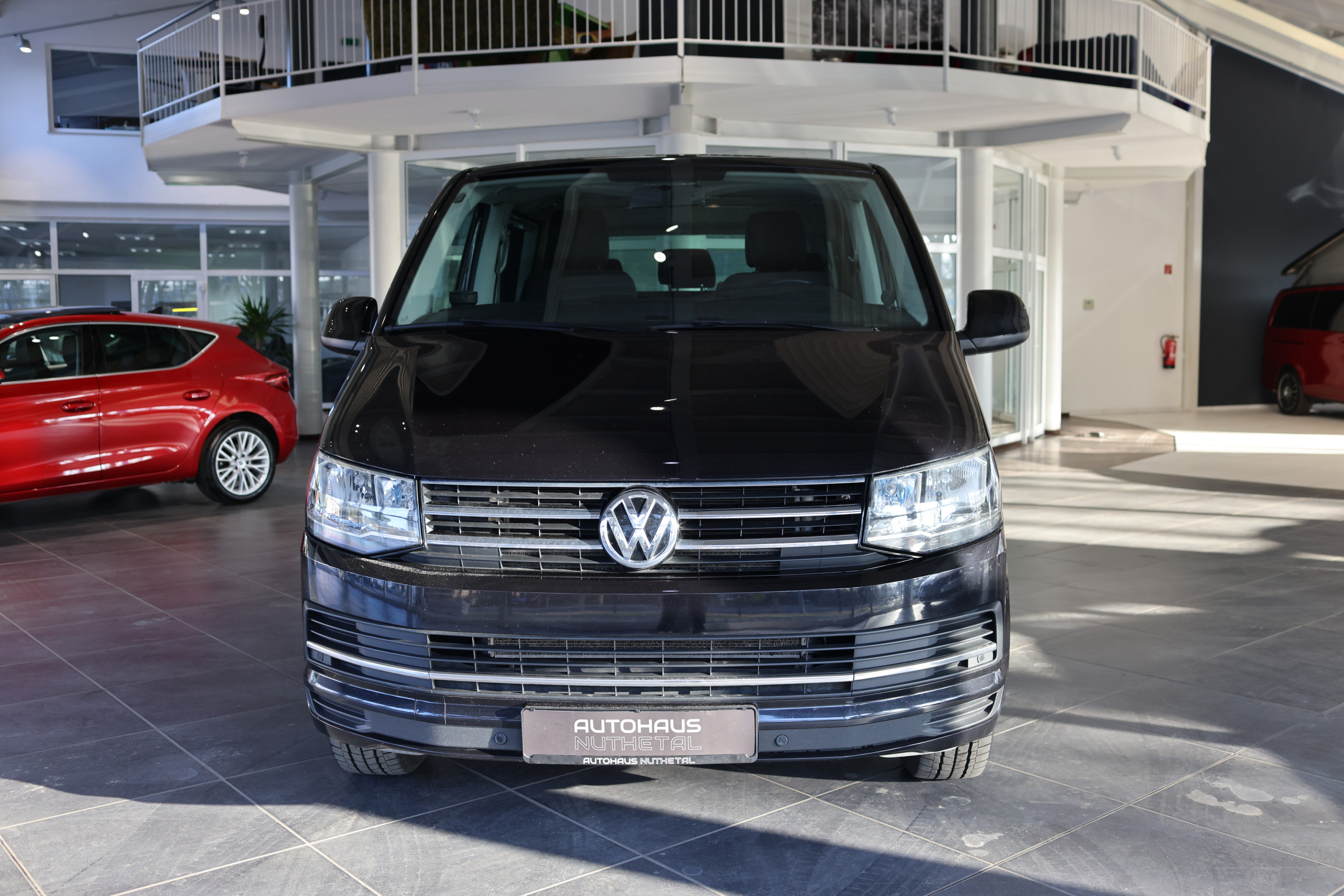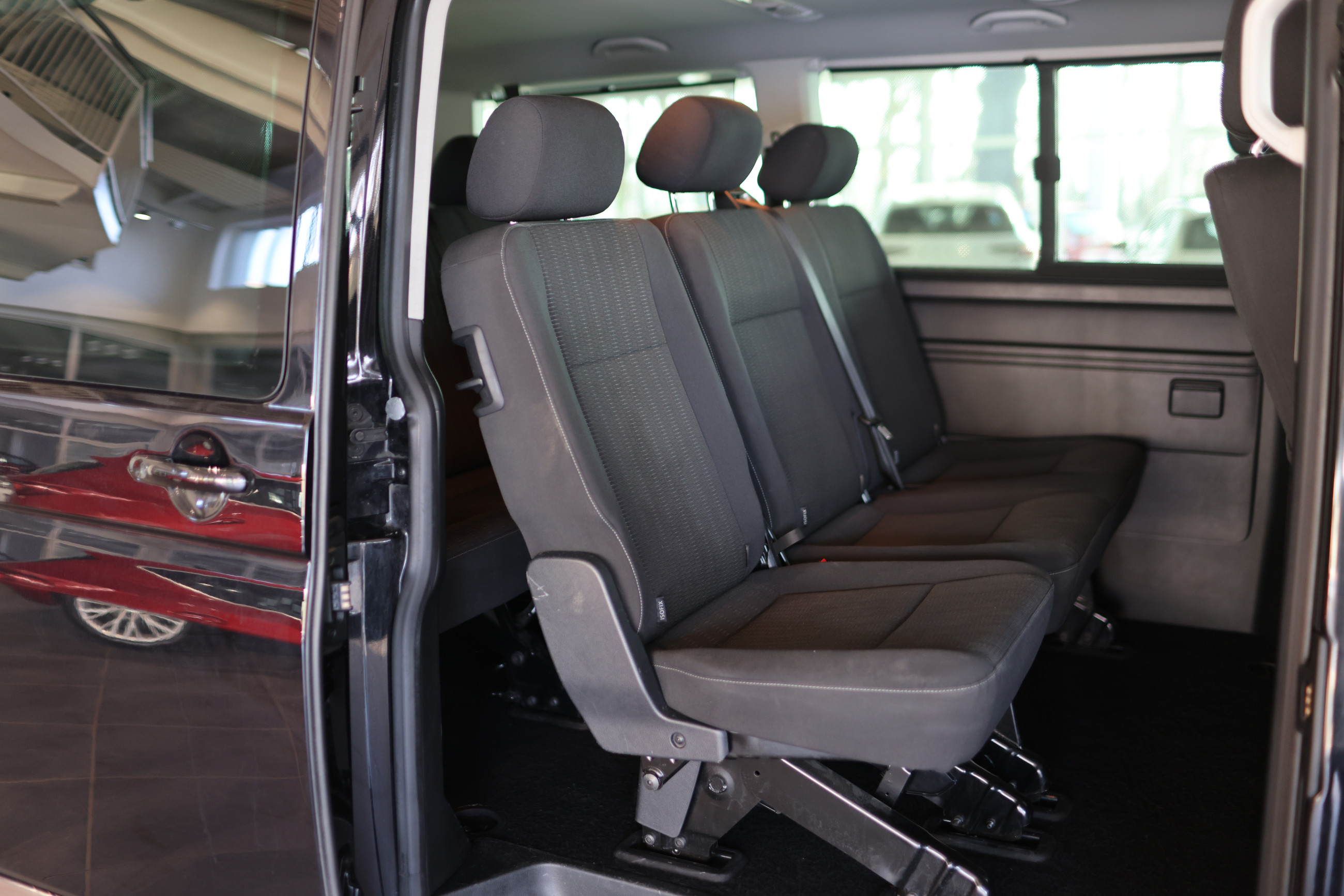 Serien-Ausstattung: Abdeckung Schiebetürleiste, Airbag Beifahrer abschaltbar, Airbag Fahrer-/Beifahrerseite, Anti-Blockier-System (ABS), Außenspiegel asphärisch, links, Außenspiegel elektr. verstell- und heizbar, Außenspiegel konvex, rechts, Außenspiegel und Türgriffe außen in Wagenfarbe, Blinkleuchten seitlich in Chromoptik, Bodenbelag: Teppich, Doppelscheinwerfer, Elektron. Stabilitäts-Programm (ESP) mit Bremsassistent, ASR/ABS, EDS und Berganfahrhilfe, Fahrassistenz-System: Bremsassistent (HBA), Fahrassistenz-System: Multikollisionsbremse (Multi Collision Brake), Fenster im Lade-/FG-Raum: - feststehend, vorn und hinten rechts, Fensterheber elektrisch, Freilaufkupplung für Doppelkupplungsgetriebe, Frontscheibe Verbundglas getönt, Funkschlüssel (2) klappbar, Getriebe 7-Gang - Doppelkupplungsgetriebe DSG, Handschuhfach abschließbar, Heckklappe mit Verglasung, Heckscheibe heizbar, mit Wischanlage, Innenleuchten im Lade-/FG-Raum: Trittstufenleuchten, Innenraumfilter: Pollenfilter, Innenspiegel abblendbar, Kindersicherung im Lade-/Fahrgastraum, Kraftstofftank: 70 Ltr., Kühlergrill schwarz lackiert, mit Chromleisten, Lenksäule (Lenkrad) verstellbar, Multifunktionsanzeige Plus, Reifenkontroll-Anzeige, Rußpartikelfilter, Schadstoffarm nach Abgasnorm Euro 6, Schiebetür Lade-/Fahrgastraum rechts, SCR-System (AdBlue-Technologie), Seitenairbag / Kopfairbag (Curtain-Airbag) vorn, Servolenkung, Sitzbezug / Polsterung: Stoff, Sitze im Fahrerhaus: Fahrer- und Beifahrersitz höhenverstellbar, Sitze im Fahrerhaus: Fahrer- und Beifahrersitz mit Armlehnen vorn, Sitze im Fahrerhaus: Lendenwirbelstützen Fahrer- und Beifahrersitz, Sonnenschutzrollo im Fahrgastraum, Start/Stop-Anlage Motor, Steckdose (12V-Anschluß) im Fahrerhaus, Stoßfänger in Wagenfarbe, Tagfahrlicht, Türablagekasten vorn, Wegfahrsperre (elektronisch), Wärmeschutzverglasung, Zentralverriegelung mit Fernbedienung und Innenbetätigung, Zuheizer, Zul. Gesamtgewicht 3,08 t