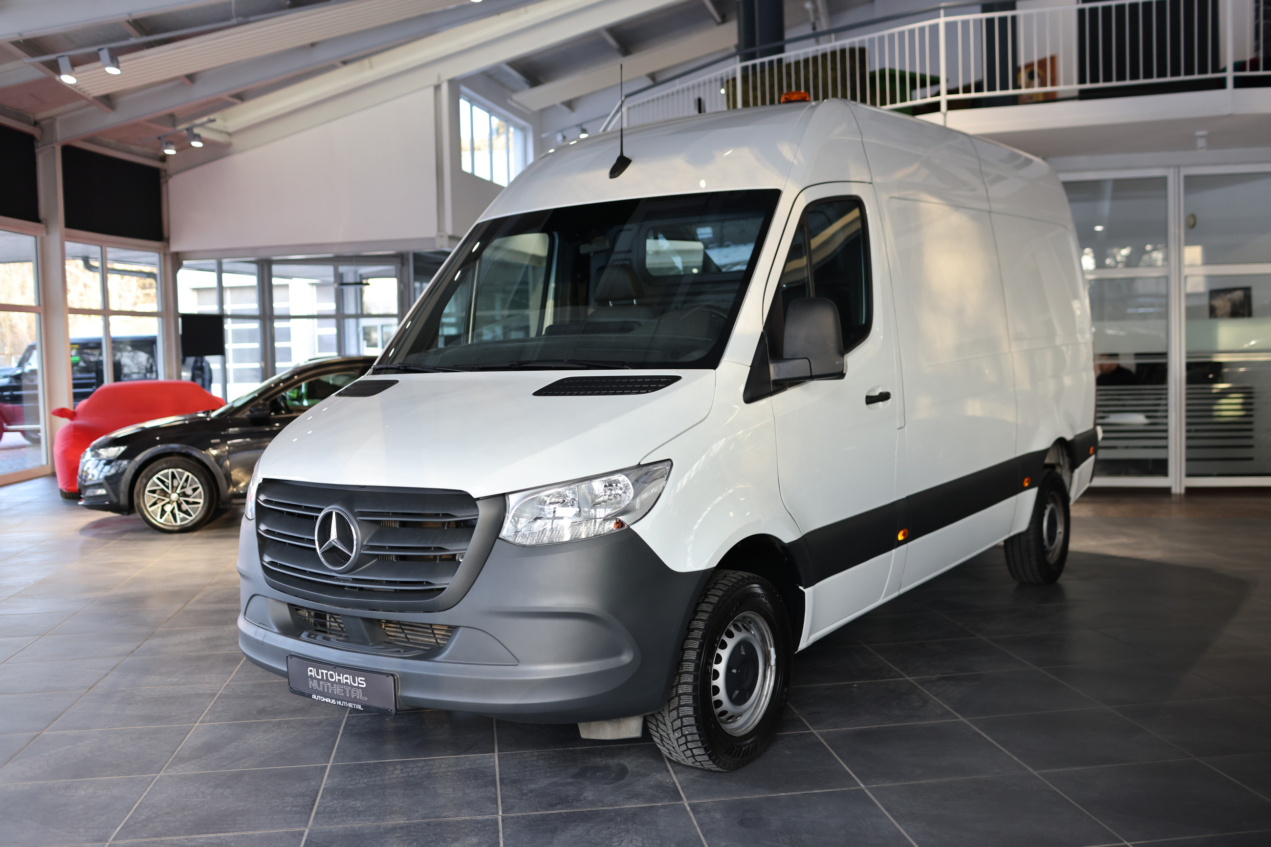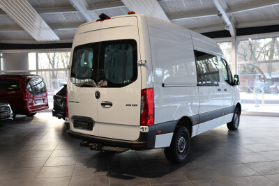 Serien-Ausstattung: 3. Bremsleuchte, Ablagefach oberhalb Frontscheibe, Ablagefach unterhalb Armaturentafel Beifahrerseite, Adaptives Bremslicht, Airbag Fahrerseite, Anfahrhilfe (Berganfahr-Assistent), Anti-Blockier-System (ABS), Antriebs-Schlupfregelung (ASR), Außenspiegel elektr. verstell- und heizbar, beide, Außentemperaturanzeige, Bremsassistent, Dachverkleidung im Fahrerhaus, Einschaltautomatik für Fahrlicht, Einstiegsgriff für Schiebetür an Laderaumtrennwand, Elektr. Bremskraftverteilung (EBV), Elektron. Stabilitäts-Programm (ESP), Fahrassistenz-System: Seitenwind-Assistent, Fensterheber elektrisch 2-fach, Getriebe Automatik GTronic - (7-Stufen), Keyless-Start, Kindersicherung, Kommunikationsmodul (LTE) für digitale Dienste, Kraftstofftank: Haupttank 71 Ltr., Lenkrad (Lenksäule mech. verstellbar), Leuchtweitenregelung, Mercedes-Benz Notrufsystem, Partikelfilter, Radstand 3665 mm, Schadstoffarm nach Abgasnorm Euro 6, Schiebetür Lade-/Fahrgastraum rechts, Sicherheitsgurt-System mit Warnanlage (Fahrerseite), Sitze im Fahrerhaus: Beifahrersitz mit Armlehne, Sitze im Fahrerhaus: Beifahrersitz verstellbar, Sitze im Fahrerhaus: Fahrersitz mit Armlehne, Sitze im Fahrerhaus: Fahrersitz verstellbar, Start/Stop-Anlage Motor, Tagfahrlicht, Vorbereitung für DAB Radioempfang, Wegfahrsperre, Zentralverriegelung mit Fernbedienung, Zul. Gesamtgewicht 3,50 t