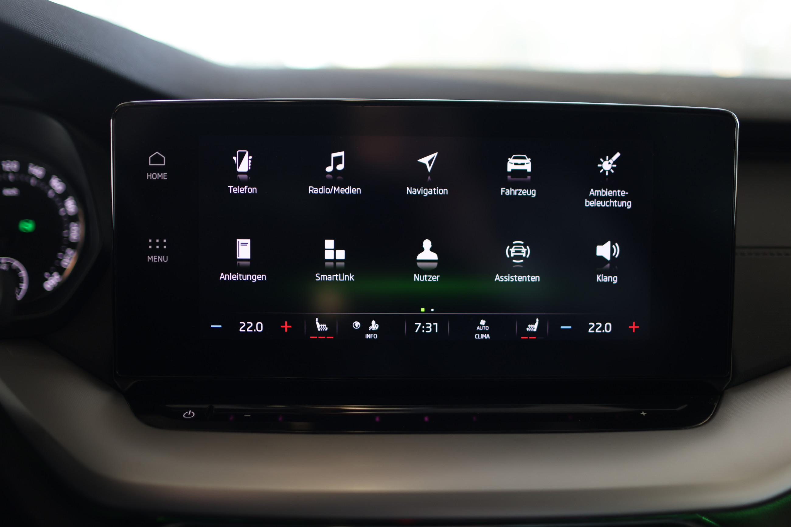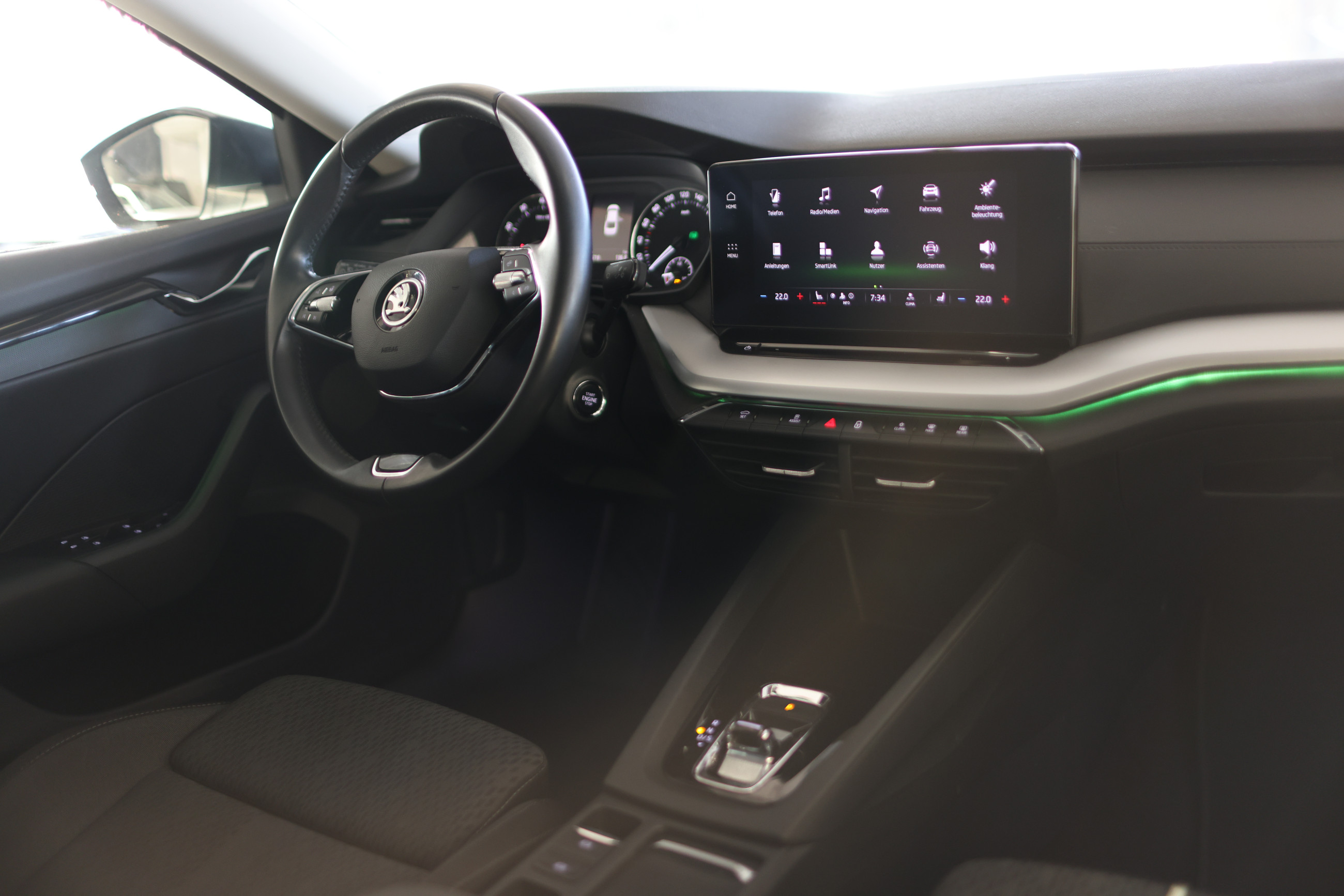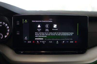 Serien-Ausstattung: 8 Lautsprecher, Ablagefach für Regenschirm, Ablagefach mit Cargo-Organizer (Gepäck-/Laderaum), Ablagetasche an Vordersitzlehnen, Airbag Beifahrerseite abschaltbar, Airbag Fahrer-/Beifahrerseite, Akustikglas Türscheiben vorn, Ambiente-Beleuchtung LED, Anhängerkupplung Vorbereitung, Anti-Blockier-System (ABS), Antriebs-Schlupfregelung (ASR), Audiosystem Bolero mit Touchscreen, Außenspiegel elektr. anklappbar, Außenspiegel elektr. verstell- und heizbar, Außenspiegel und Türgriffe außen in Wagenfarbe, Bordcomputer, Brillenfach, Dachhimmel grau, Einparkhilfe vorn und hinten, Elektron. Querdifferentialsperre (XDS), Elektron. Stabilitäts-Programm (ESP), Fahrassistenz-System: Abbiegebremsfunktion und Ausweichunterstützung, Fahrassistenz-System: Auffahrwarnsystem mit City-Notbremsfunktion (Frontradar-Assistent), Fahrassistenz-System: Berganfahr-Assistent (Hill-Holder), Fahrassistenz-System: Fernlichtassistent, Fahrassistenz-System: Multikollisionsbremse (Multi Collision Brake), Fahrassistenz-System: Spurhalteassistent (Lane Assist), Fensterheber elektrisch vorn + hinten, Freisprechanlage Telefon mit Bluetooth, Frontkamera, Fußraumbeleuchtung vorn und hinten, Gepäck-/Laderaumabdeckung, Geschwindigkeits-Regelanlage (Tempomat) inkl. Geschwindigkeits-Begrenzeranlage, Getriebe 7-Gang - Doppelkupplungsgetriebe DSG, Heckleuchten LED (Kristallglas-Optik), Innenausstattung: Dekoreinlagen Silber mit Ambiente-Beleuchtung, Innenspiegel mit Abblendautomatik, Isofix-Aufnahmen für Kindersitz an Beifahrersitz, Isofix-Aufnahmen für Kindersitz an Rücksitz, Kennzeichenbeleuchtung LED, Klimaanlage Climatronic 3-Zonen, Knieairbag Fahrerseite, Kopf-Airbag-System, Lehnenentriegelung der Rücksitzlehne im Kofferraum, Lendenwirbelstütze Sitz vorn links, Lendenwirbelstütze Sitz vorn rechts, Lenkrad (Leder) mit Multifunktion, Lenkrad heizbar, Lenksäule (Lenkrad) verstellbar (vertikal / axial), Licht- und Regensensor, Lichtassistent (Coming Home, Leaving Home), LM-Felgen, Mild-Hybrid 110 kW (Motor 1,5 Ltr. - 110 kW TSI ACT e-TEC), Mittelarmlehne hinten, Mittelarmlehne vorn, Nebelscheinwerfer LED mit Abbiegelicht, Notrufsystem, Otto-Partikelfilter (OPF), Parkbremse elektronisch, Radioempfang digital (DAB+), Reifen-Reparaturkit, Reifendruck-Kontrollsystem, Rückfahrkamera, Rücksitzlehne geteilt/klappbar, Schadstoffarm nach Abgasnorm Euro 6d, Scheibenwaschdüsen heizbar, Scheinwerfer LED, Scheinwerfer-Reinigungsanlage (SRA), Seitenairbag vorn, Seitenairbag vorn mitte (Center-Airbag), Service-System: Remote Services, Servolenkung elektronisch (Servotronic), Sitz vorn links höhenverstellbar, Sitz vorn rechts höhenverstellbar, Sitzbezug / Polsterung: Stoff Ambition Schwarz, Sitze vorn ErgoComfort, manuell verstellbar (inkl. Massagefunktion, ausziehbarer Beinauflage), Sitzheizung hinten, Sitzheizung vorn, SmartLink (Apple CarPlay und Android Auto), Sonnenblenden mit Spiegel (LED-Beleuchtung), Sprachsteuerung für Infotainment-System, Start/Stop-Anlage, Steckdose (12V-Anschluß) im Koffer-/Laderaum, Steckdose 230V inkl. USB-Anschlüsse Typ C, 2 x für 2.Sitzreihe und 1 x im Innenspiegel (nur Ladefunktion), Stoßfänger vorn mit Chrom-Applikationen, Tagfahrlicht LED, USB-Schnittstelle vorn (2-fach, Typ C), Verglasung getönt, Verzurrösen Koffer-/Laderaum, Wegfahrsperre, Wireless SmartLink, Zentralverriegelung / Startanlage Kessy-Go