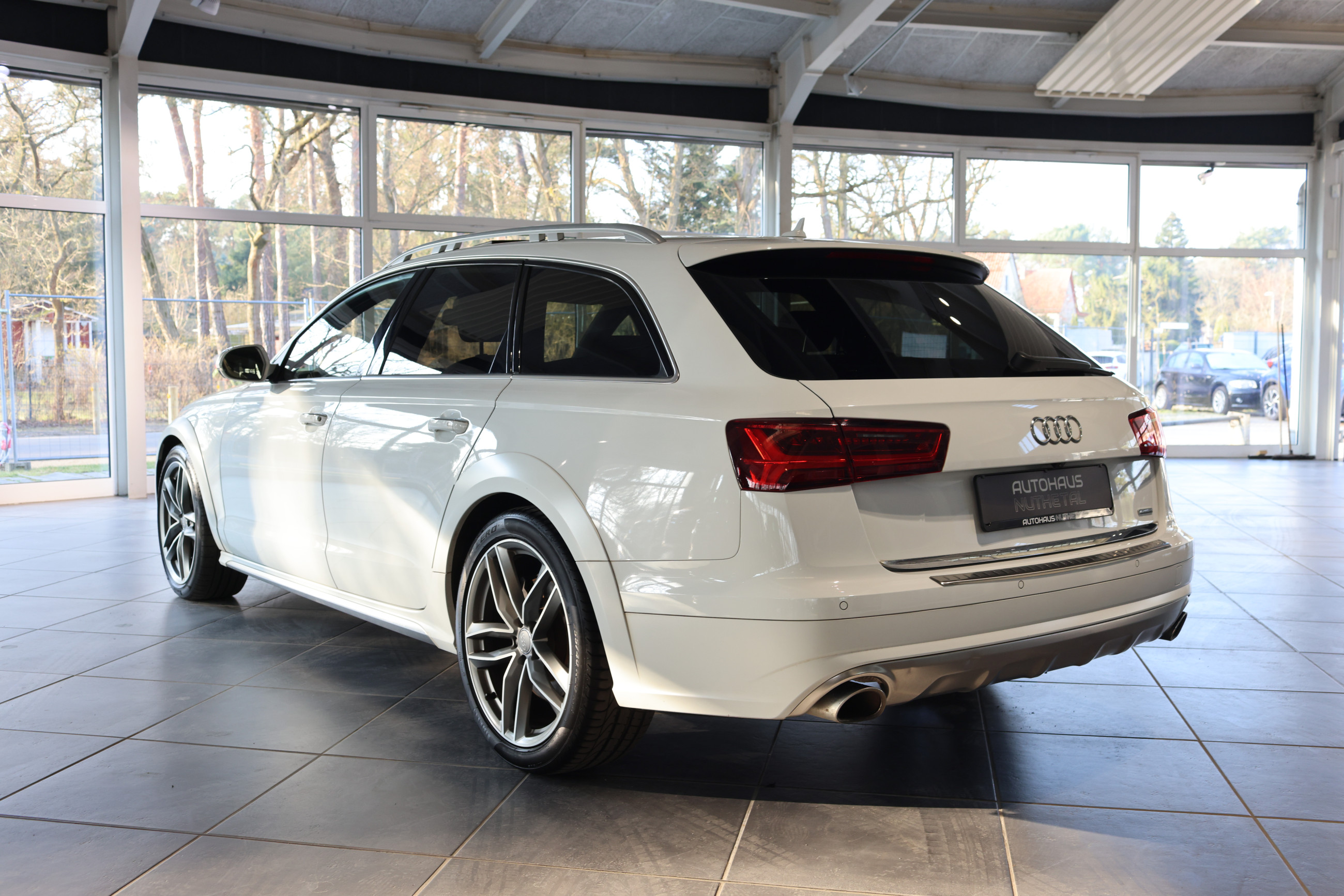 Serien-Ausstattung: Airbag Fahrer-/Beifahrerseite, Anti-Blockier-System (ABS), Antriebs-Schlupfregelung (ASR), Antriebsart: Allradantrieb permanent, Audi Drive Select, Außenspiegel asphärisch, links, Außenspiegel asphärisch, rechts, Außenspiegel Wagenfarbe, Blinkleuchten LED in Außenspiegel integriert, Dachspoiler, Einstiegsleisten mit Aluminiumeinlage, Elektron. Differentialsperre (EDS), Elektron. Stabilitäts-Programm (ESP), Fahrassistenz-System: Anfahr-Assistent (hold assist), Fahrassistenz-System: Insassen-Schutzsystem (Audi pre sense basic), Fahrwerk (adaptive air suspension), Fensterheber elektrisch vorn + hinten, Frontscheibe Verbundglas, Gepäcknetz an Vordersitzlehne, Gepäckraum-Abtrennung (Netz), Geschwindigkeits-Regelanlage (Tempomat), Getriebe Automatik - Tiptronic (8-Stufen), Getränkehalter in Mittelkonsole, Heckleuchten LED, Isofix-Aufnahmen für Kindersitz, Kopf-Airbag-System (Sideguard), Kraftstofftank: 75 Ltr., Lenksäule (Lenkrad) mech. Höhen-/Längsverstellung, Licht- und Regensensor, Mittelarmlehne hinten mit Fach, Mittelarmlehne vorn, Multifunktionsanzeige / Bordcomputer, Raucher-Paket, Reifen-Reparaturkit, Reifenkontroll-Anzeige, Rußpartikelfilter, Rücksitzlehne geteilt/klappbar, Schadstoffarm nach Abgasnorm Euro 6, Seitenairbag vorn, Servolenkung elektro-mechanisch, Start/Stop-Anlage, Steckdose (12V-Anschluß) im Koffer-/Laderaum, Wegfahrsperre (elektronisch), Zentralverriegelung mit Fernbedienung